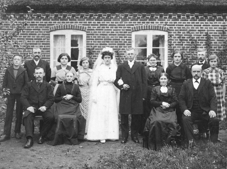 Ukendt person, måske Rasmus Rasmussen Grølsted, Kirstine Marie Kjeldsen, Jenny Kjeldsen,