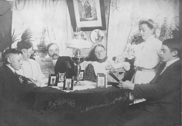 Petrine Hansen og Paul samt døtrene Anna og Sigrid.